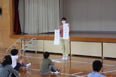 5月11日(水)の3校時に『1年生を迎える会』を行いました。さのっこ委員会が企画して、1年生の自己紹介、〇×ゲーム、ジェスチャーゲーム、ジャンケンじんとりをしました。7名の新入生、毎日元気に学校生活を送っています。給食当番や縦割り掃除もしっかりと取り組んでいます。1年生を迎える会が終了したとき、1年生のMさんが「はぁ~おもしろかった!!」と言っていたのが印象的でした。上級生の皆さん、これからも1年生をよろしく頼みますね。