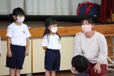 全校集会では、校長先生からは「1学期後半は運動会の練習も始まります。まずは、授業でのけじめをしっかりできるように心がけましょう。」というお話がありました。また、8・9月の生活目標である「いつでもどこでも立腰の姿勢をつくろう」の実現に向けて、担当の先生から【しせいれんじゃー】「グー」「ペタ」「ピン」のお話がありました。しっかりした姿勢ができると、①集中力アップ! ②スタイルアップ! ③成績アップ! につながるということですので、早速今日から心がけたいものです。