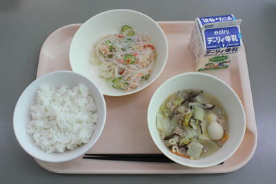 【1/16(月)】★「ひむか地産地消の日」麦ごはん、八宝菜、はるさめの酢の物