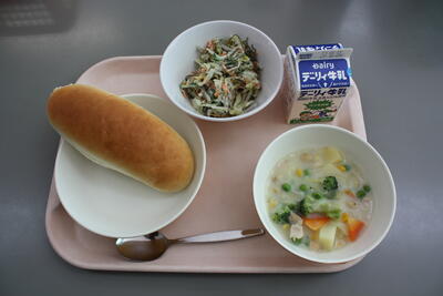 【1/31(火)】「ベジ活の日」コッペパン、シチュー、かみかみサラダ