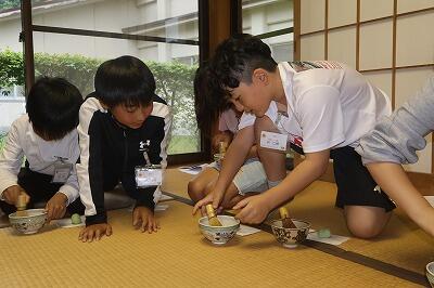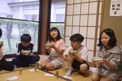 6月1日(日)から6月4日(水)の期間、御池青少年自然の家の「通所合宿」に参加している児童が13名います。「通所合宿」では、自然の家の施設に寝泊まりして、自然の家から学校に登校して、自然の家に帰ります。自分たちで洗濯したり、部屋の掃除などを行います。3年生以上が参加していますが、自分の力でがんばっているようです。昨夜は、茶道教室があり、茶道にチャレンジしました。自分たちでお菓子を手作りしたり、抹茶を点てたりしました。とてもいい体験になりました。