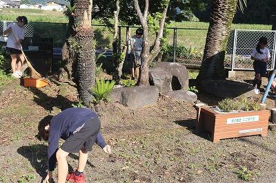 5・6年生の呼びかけで「ちょボラ」がはじまりました。今朝は、1年生から6年生までたくさんの子どもたちが参加していました。草抜きをしたり、落ち葉を掃いたりしていました。とてもいい気持ちになりました。さのっこはすごい。