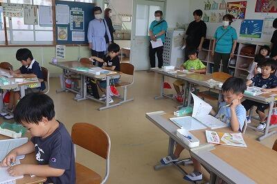 9月12日は参観日でした。たくさんのご参加ありがとうございました。はじめに、町教育委員会から来年度のスクールバス運行について、説明していただきました。授業参観では、おうちの人に見守られながら、一生懸命がんばる姿が見られました。学級懇談、学校保健委員会へのご参加もありがとうございました。