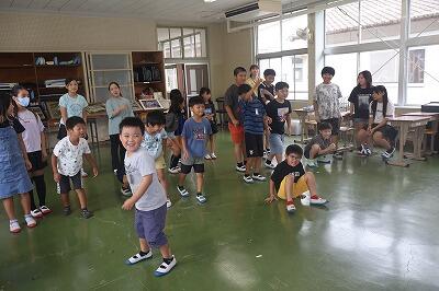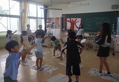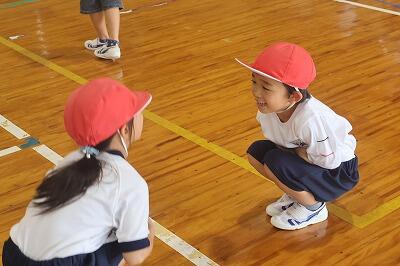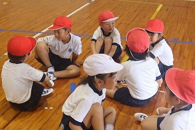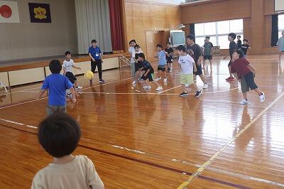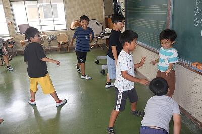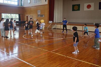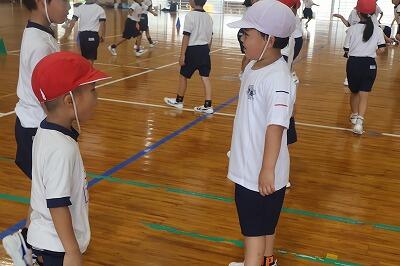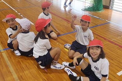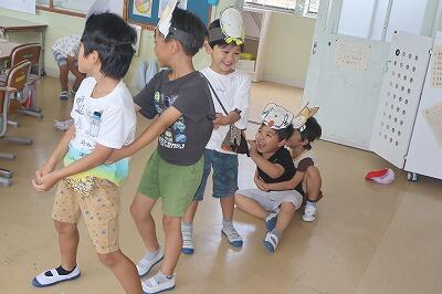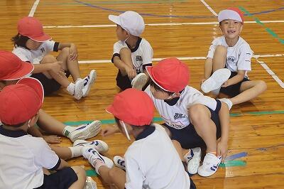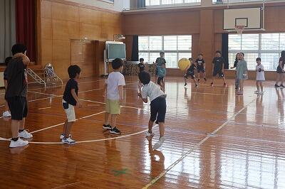 熱中症の危険があり、外で遊べないので室内で遊びました。5,6年生が上手にリードしていました。
