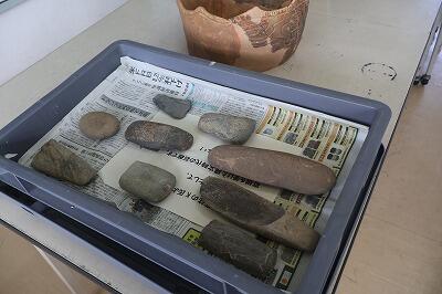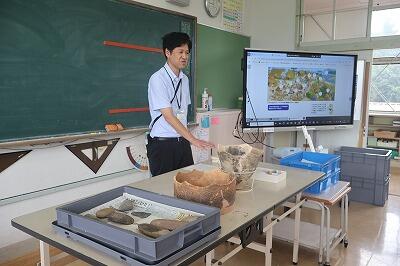 6年生は、社会科の歴史の学習が始まりました。歴史に興味をもってもらいたいと考え、町の文化財の先生方に出前授業をお願いしました。狭野地区には、椨粉山遺跡という縄文時代の遺跡があります。その遺跡から出土した本物の土器や石器をもってきてくださって、実際に見てさわって学習することができました。子どもたちは、興味津々で説明を聞いたり、写真をとったりしていました。やはり、本物にふれることは大切ですね。文化財課の先生方、ありがとうございました。