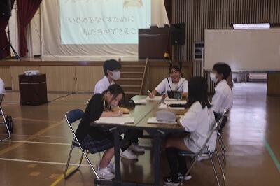 8月20日(水)に「いじめ問題子供サミット」が小林中央公民館で行われました。本年度、狭野小は「いじめ問題に係る取組推進校」に指定され、子どもたちが主体的にいじめの未然防止に取り組んできました。その取組について、プレゼンで立派に発表しました。南部教育事務所管内の小中高校の代表が7校発表しました。後半は、グループでいじめを防ぐたためにできることを話し合いました。代表の6年生3名は、緊張する中、本当によくがんばりました。これからも学校のリーダーとして、いい学校にするために活躍してほしいと思います。