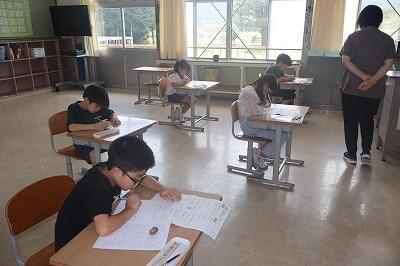夏休みが終わり、今日から1学期後半がスタートしました。子どもたちは、みんな元気に登校してくれました。全校集会では、校長から戦争や平和について考える話がありました。その後、しっかり授業を受けてがんばりました。