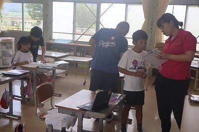 4年生は、算数を教え合いながら、がんばって問題を解いていました。