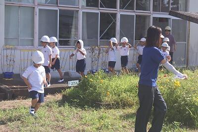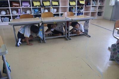 防災の日に関連して、地震が発生したときの避難訓練を実施しました。まず、しっかり机の下に身を入れて、頭を守り、揺れがおさまったら、すばやくヘルメットを被って運動場に避難しました。みんな真剣に地震から身を守るための行動をとることができました。災害が起きたときには、自分の命を守るために「自分で考えて、判断して行動できる力」を身に付けることが大切です。新燃岳の噴火に備えてさらに、防災意識を高めていきたいと思います。