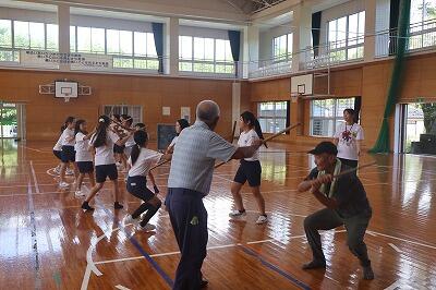 9月23日(祝日)に、皇子原公園で「たかはる和ールドフェスタ」が行われます。そのイベントに狭野小の子供たちが、棒踊りで出演します。そのための練習がありました。はじめ、運動会に向けてご指導していただいたお礼をして、そのあと練習をしました。大変暑い中での練習でしたが、保存会の方々の指導を受けながら、子どもたちもよくがんばっていました。本番が楽しみです。