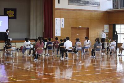 今回は、小林市の社会福祉法人ときわ会に講話を依頼しました。講師の下園先生には、「仕事(働く)ってな~に? 福祉ってな~に?」という題で、プレゼンや映像を用いて大変分かりやすくお話をしていただきました。子どもたちは、先生のお話を伺いながら、働くことの意味や福祉の仕事、あるいは福祉に携わる方々の思いについて理解を深めることができました。「将来、人に喜んでもらえる仕事ができるよう、コツコツと努力を積み重ねてほしい。」というお話には、狭野小の先輩でもある下園先生の後輩に対する愛情(エール)を感じました。本当にありがとうございました。