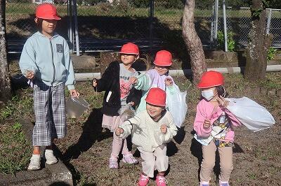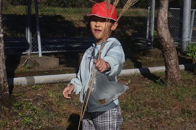 1、2年生が校庭で秋を探していました。すすきの穂や紅葉した落ち葉などを拾っていました。