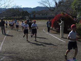 澄み切った青空の下、持久走大会が行われました。今日は、風もなく絶好のコンディションでした。低学年800m、中学年1300m、高学年1800m走り、全児童が完走しました。たくさんの保護者や地域の方の応援があり、より自分の力を発揮できたと思います。子ども達が力の限り走る姿に感動させられました。