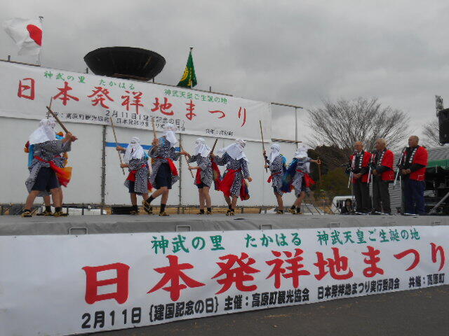 2月11日日本発祥地まつりで、狭野小5・6年生が、棒踊りを