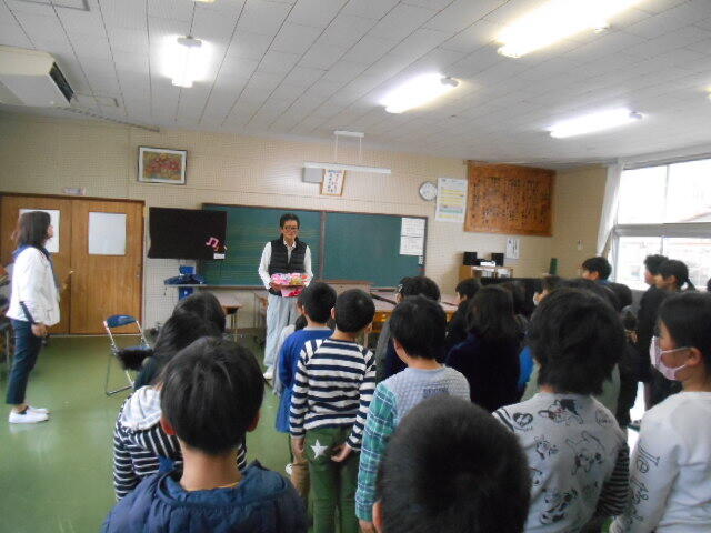 今日は、用務員さんに感謝の気持ちを伝える集会をしました。