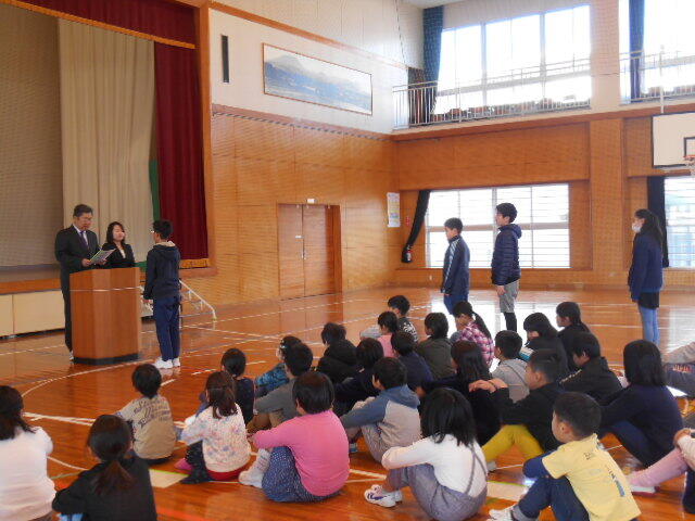 平成30年度の修了式を行いました。修了証が校長先生から代表児童に手渡されました。