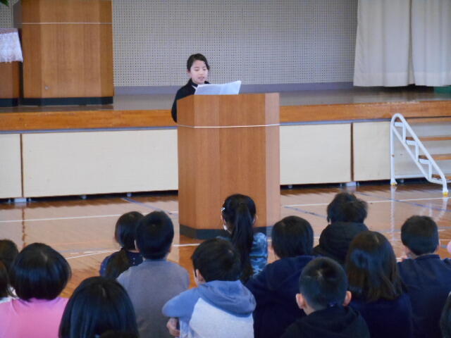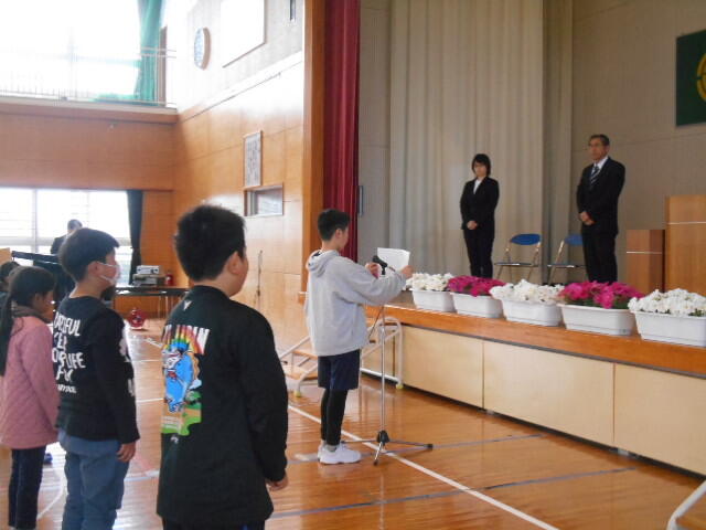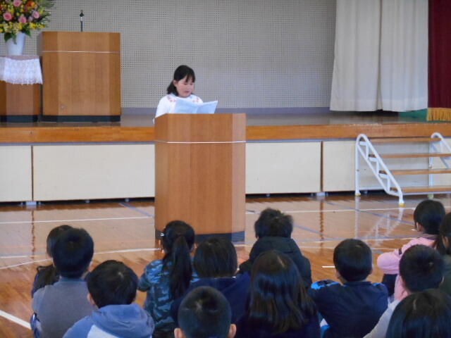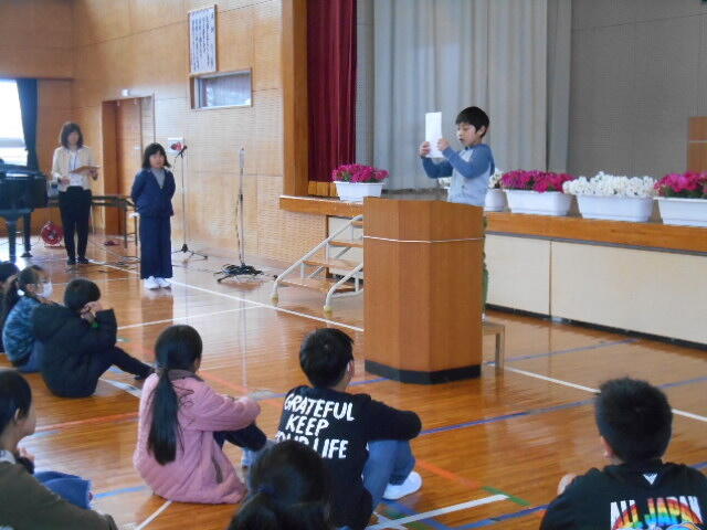 その後、3年生と4年生の児童が、作文発表をしました。1年間、よくがんばりました。