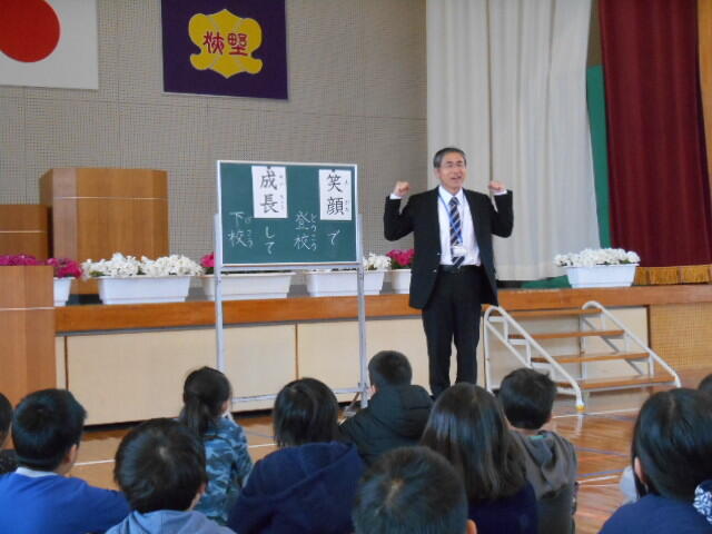 校長先生から、「笑顔で登校、成長して下校」できるように、お話がありました。