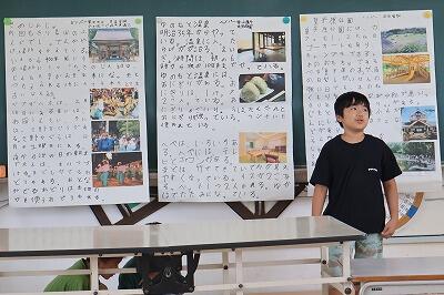 3年生が交流向けて向けて、発表の練習をしていました。3年生は、社会科で高原町のことを調べました。交流会では、他校の友だちに伝えたい狭野地区の「よさ」を発表します。狭野神社、湯之元温泉、皇子原公園についてまとめていました。とても上手に発表していました。本番が楽しみです。