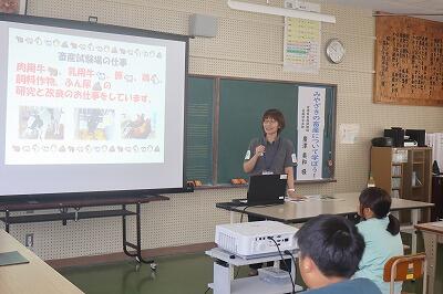 キャリア教育の一環である「さのっ講話」がありました。本年度は、宮崎畜産試験場の「廣津 美和」先生に来ていただいて、畜産に関する講話をしてもらいました。宮崎県の畜産の様子や畜産試験場の仕事などについて、わかりやすく話をしていただきました。高原町にある畜産試験場ですが、その仕事について学ぶ機会はあまりなかったと思います。今日は、畜産について学び、興味・関心が高まりました。廣津先生、ご講話いただきありがとうございました。