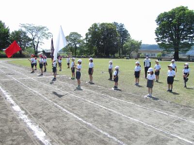 37日間の夏休みを終えて、8月28日(月)から1学期後半の学校がスターしました。この日、夏休みの宿題や作品を手に、全校児童28名が元気に登校しました。全校集会では、校長先生からは、「新しい目標を立てて、具体的に取り組んでいきましょう。」というお話がありました。担当の先生からは、8・9月の生活目標についてのお話がありました。また、7月に行われた水泳記録会の表彰、登校班に分かれての危険箇所等の確認も行われました。