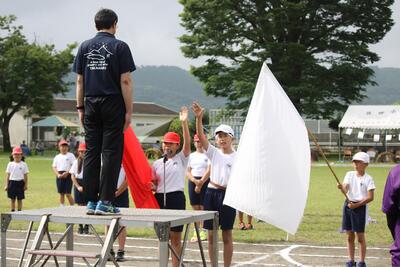 5月20日(土)に狭野小学校の春季大運動会を開催しました。朝、小雨が降りましたが、無事に終了することができました。今年は、久しぶりに来賓の方々にも参観していただきました。「最後まであきらめないで楽しもう!」というスローガンを掲げ、赤団・白団とも精一杯頑張ることができました。競技の部・応援の部とも赤団が勝利しましたが、白団の皆さんの表情には爽やかな達成感がありました。予行練習では、小優勝旗を1つももらえなかった白団でしたが、今大会では、全校リレーで勝利、さのっこタイフーンとダンシング玉入れでは、赤団との同時・同数で小優勝旗を獲得しました。五月の心地よい風の中、保護者や御家族、地域の皆さんの温かい声援を受けて頑張った運動会。これからの学校生活につなげたいと思います。たくさんの応援と御協力をいただきまして、本当にありがとうございました。