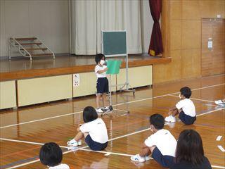 短い秋休みが明け、今日から2学期のスタートです。始業式では、1年生の作文発表や青少年健全育成町民大会で発表予定であった標語や作文の発表が行われました。明日が遠足、30日が運動会と行事が続きます。2学期も様々な体験を通して心身ともにたくましく成長していきましょう。