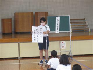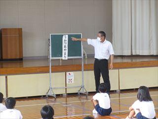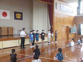 短い秋休みが明け、今日から2学期のスタートです。始業式では、1年生の作文発表や青少年健全育成町民大会で発表予定であった標語や作文の発表が行われました。明日が遠足、30日が運動会と行事が続きます。2学期も様々な体験を通して心身ともにたくましく成長していきましょう。