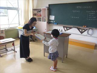 今日は、1学期の終業式でした。作文発表、朝ちょボラ係の任命式、多読賞・漢字検定の表彰等、子ども達のがんばりについての紹介がたくさんありました。終業式の後、1年生は、初めての「あゆみ」をもらいました。