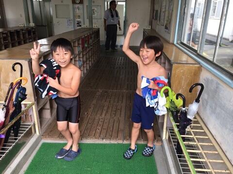 雨が続いた梅雨、待ちに待ったプールに向かうさのっこ。