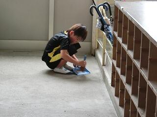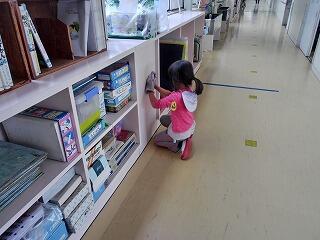 一年さのっこ、珍しくて、珍しくて、覗き込んだ姿をこちらからナイスショット!