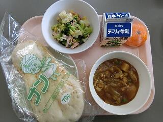 じゃん! カレーとナンでした!今日のメニュー!すごい。ミカン付き。