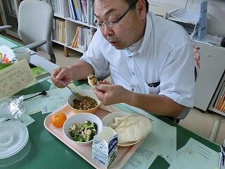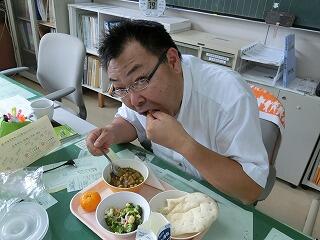 うん、おいしいけど、ナンにカレー乗せるのは、校長先生難しいです。