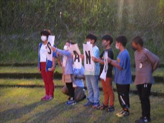 天候が心配されましたが、1日目は、午前のネイチャーゲーム以外は、屋外で活動ができました。追跡ハイキングでは、高原町4校の小学校で活動班を10班作り、班で協力しながら課題を解決していきました。夜は、キャンプファイヤーが行われ、狭野小の5年生は、学校紹介とアブラハムの子のダンスを披露しました。