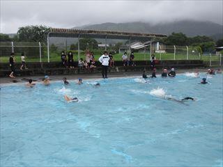 3~6年生合同で水泳披露会がありました。25m・50m自由形、25m平泳ぎ、リレーの種目があり、自分の泳力にあわせて、それぞれの種目にエントリーし、タイムや泳力をはかりました。保護者の方もたくさん応援に来ていたので、いつも以上にがんばる姿がありました。