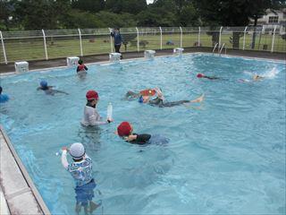 毎年、この時期になると海や川での事故が起こっています。服を着たまま水の中に入ると、体を動かしにくくなったり水着を着た時のように泳げなくなったりします。今日は、服の中に空気を入れて浮いたり、ペットボトルで浮いたりする学習をしました。命はひとつです。子どもだけでは、絶対に川や海には行かないようにしましょう。