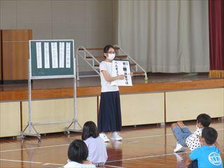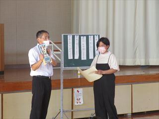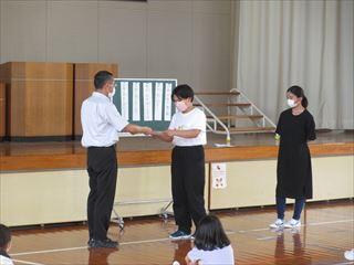 明日から夏休みです。集会では、校長先生から夏休みにがんばってほしいことの話があった後、安全、生活、学習についての話がありました。最後には、剣道の表彰がありました。安全に気をつけ、有意義な夏休みを過ごしてほしいです。
