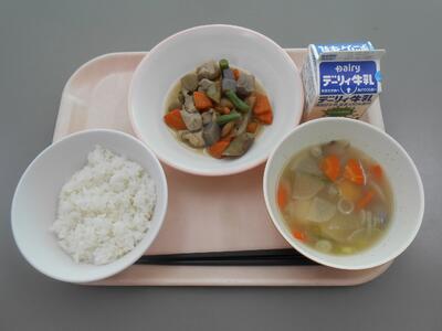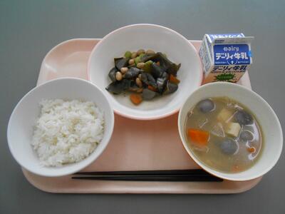 【9月15日】『ひむか地産地消の日』麦ごはん、豚汁、五目豆、牛乳