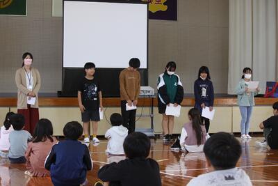 その他、各学年のビブリオバトルでチャンピオンに選ばれた児童の発表や文集関係の表彰、担当の先生からの今月の目標に関するお話がありました。