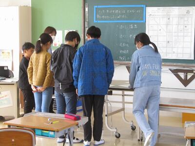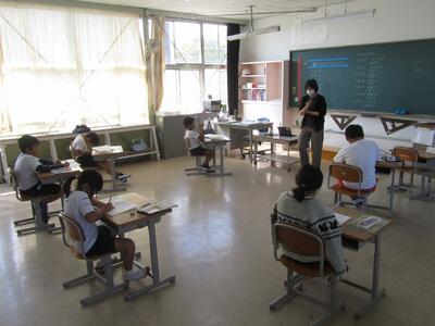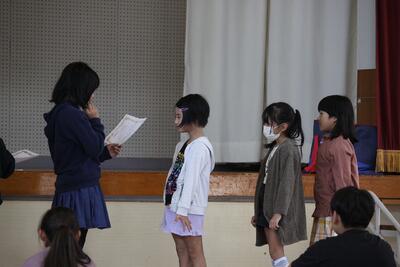 10月11日(水)は、2学期の始業日でした。全校児童28名全員が元気よく登校し、1時間目の始業式に臨みました。代表児童による「2学期の抱負」では、「スイミングとスリッパならべをがんばりたいです。」という目標を述べてくれました。校長先生からは、「1学期に培ったけじめと思いやりを土台として『自治』を目指してほしい。」というお話がありました。始業式の後、担当の先生からは、10月の目標「進んで読書しよう」についてのお話やスクールワイドPBSに関連して改訂版行動マトリックスについてのお話がありました。また、11/3に行われる町青少年健全育成大会で学校代表として参加する児童による意見作文の発表もありました。爽やかな秋空の下、新たな気持ちで2学期をスタートすることができました。