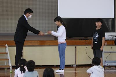 10月6日(金)は、1学期の終業式でした。1学期を振り返っての児童代表作文発表の後、校長先生からは「1学期、皆さんが『けじめ』と『思いやり』を意識して生活し、だいぶ成長することができました。」というお話がありました。また、さのっこ・体育委員会からの表彰、青少年健全育成標語や多読賞の表彰もありました。