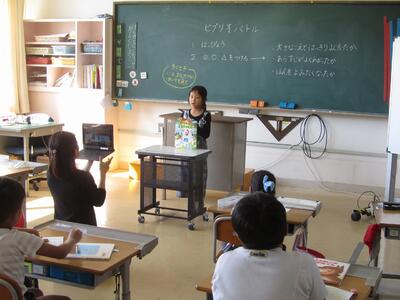 10月27日と31日に、低学年・中学年・高学年それぞれに分かれて『ビブリオバトル』を行いました。自分が選んだお薦めの本を友達に紹介し、一番上手な発表をみんなの投票で決めるというものです。各学年のチャンピオンになった児童には、11月の全校集会で改めて発表してもらいました。