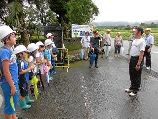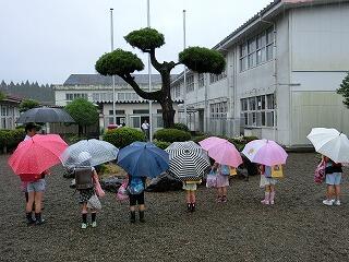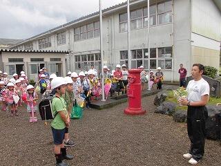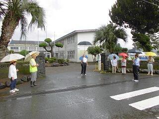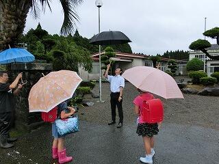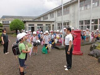 集団下校に45年生保護者がかけつけてくださり、最後に記念品贈呈!