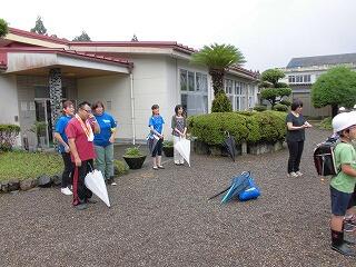 今朝はあいさ2運動でした。ボランティアの間でも新体操先生は有名人です。