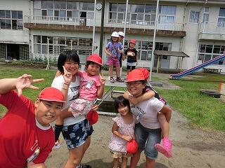 さのっこ女子に鼻をつままれて、みな大爆笑!