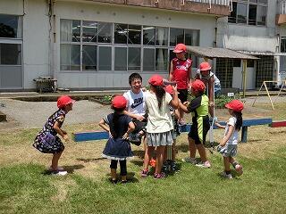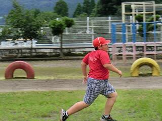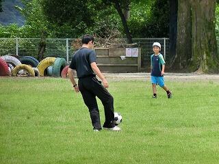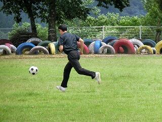 運動場では、大盛り先生が走られない分、新体操先生がサッカーで疾走!