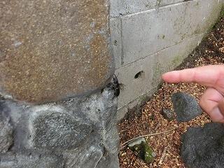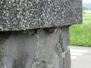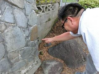 おそらく、歴史ある古い門柱が、撤収(改修?)されるとき、時の方々が、「門柱の上の部分だけでも残そう」と思われ、下はコンクリート柱にして、昔からの門柱の上の部分をのせて、保存しようと考えられたのではないかと、想像しています。