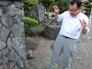 正門は、「さのっ根性の芽」が生えている立派な門柱。