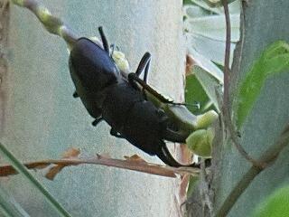隣に蛍光灯もありますし、夜、光に集まり、ココスヤシの蜜を吸っているのでしょう。