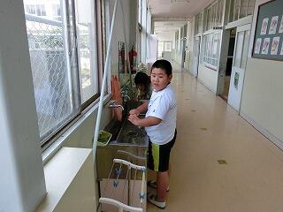 こっち側で雑巾受け取って、ていねいに拭いて・・・。